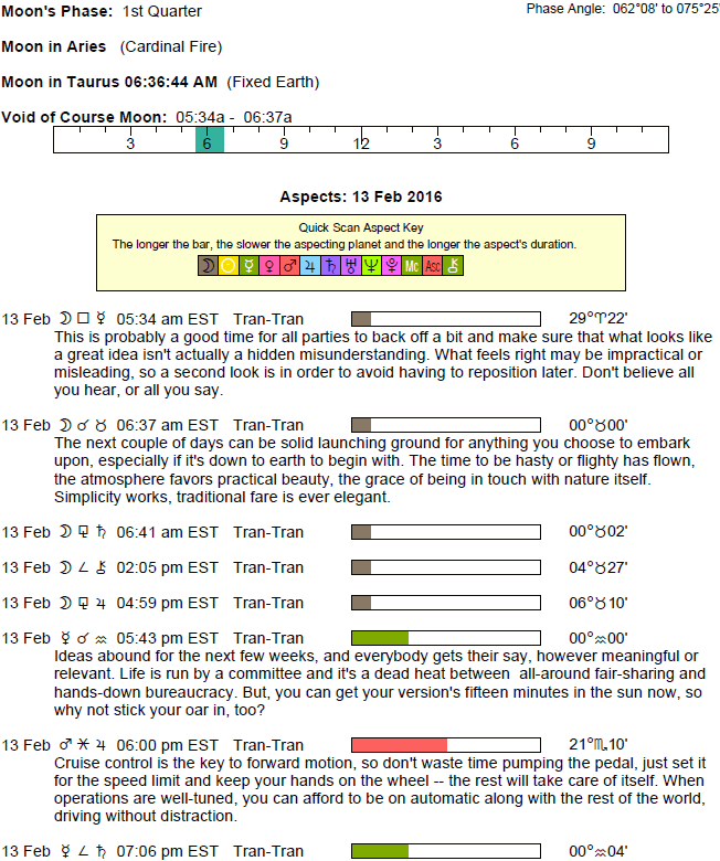 - The Moon is in Taurus from 6:35 AM forward (until Monday, February 15th, at 9:34 AM).