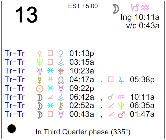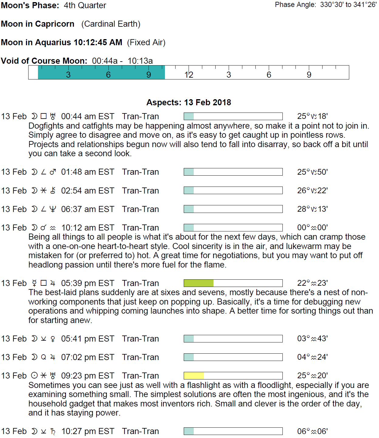 Above are astrological event highlights for the day. Full Horoscopes are on Cafe Astrology. If Your Birthday is February 13th, If Today is Your Birthday full horoscope here.