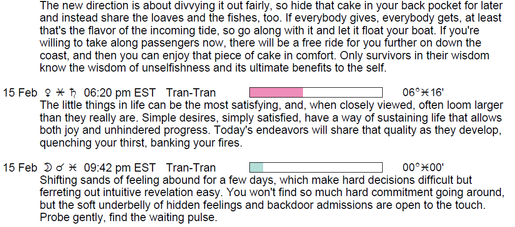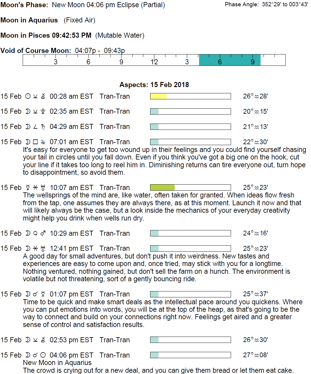 Above are astrological event highlights for the day. Full Horoscopes are on Cafe Astrology. If Your Birthday is February 15th, If Today is Your Birthday full horoscope here.