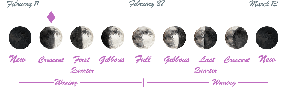 - The New Moon occurred on the 11th in the sign of Aquarius, and the First Quarter Moon will happen on the 19th.