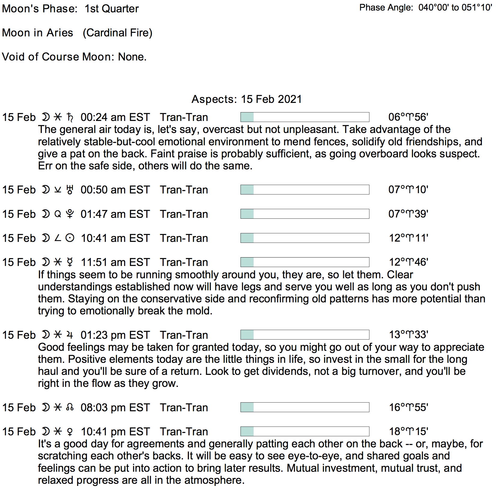 If you’re astrologically inclined and interested in the details of the Astrology of today, here are some of the factors considered in the forecasts: