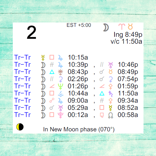 An auspicious time for any project demanding endurance or tolerance. Also good for establishing new habits and rituals.