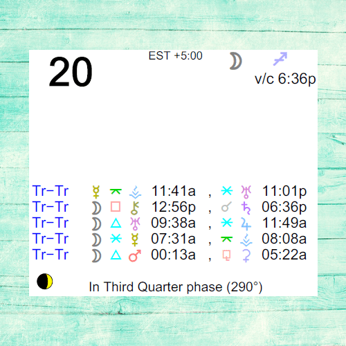 - The Moon is void from 6:36 PM forward (until tomorrow at 2:07 AM).