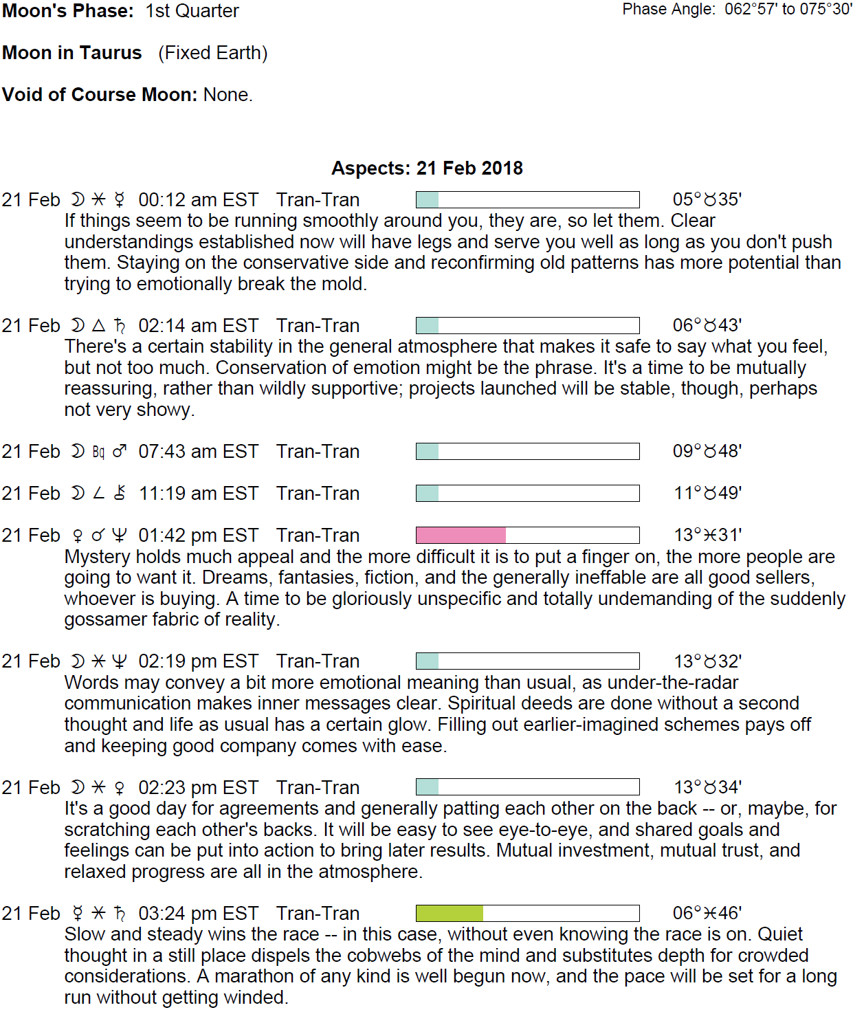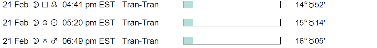 Above are astrological event highlights for the day. Full Horoscopes are on Cafe Astrology. If Your Birthday is February 21st, If Today is Your Birthday full horoscope here.