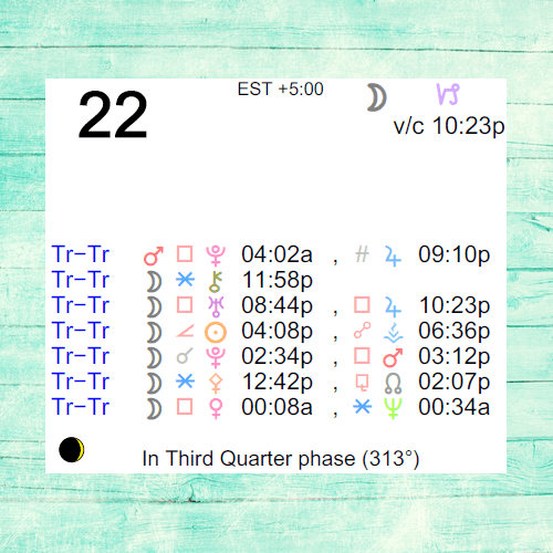 - The Moon is void from 10:23 PM forward (until tomorrow at 12:17 PM).