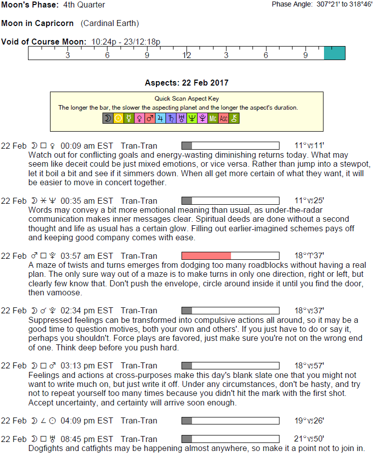 - The Moon is in Capricorn all day (until Thursday, February 23rd, at 12:17 PM).