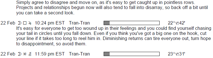 We can overreact and exhibit impatience. However, this can also be a time of self-motivation. Our need for challenges and action is stimulated now, but we may not find the right outlets.