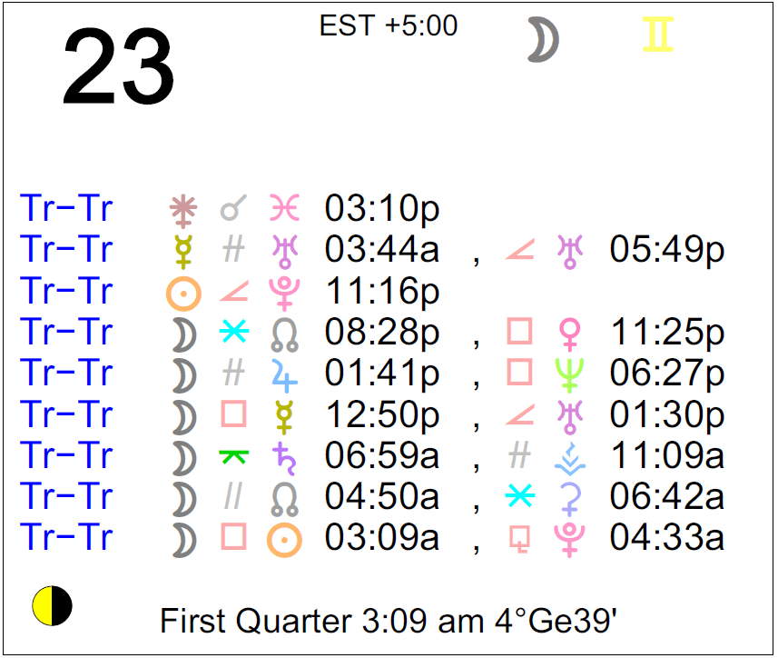 Above are astrological event highlights for the day. Full Horoscopes are on Cafe Astrology. If Your Birthday is February 23rd, If Today is Your Birthday full horoscope here.