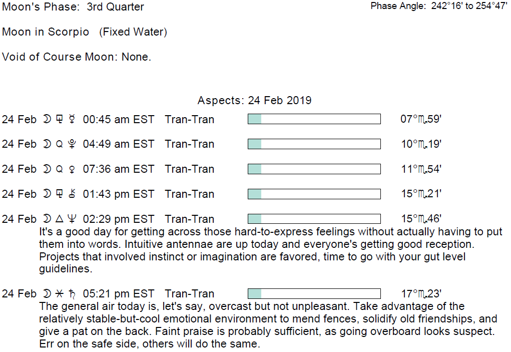 If you’re astrologically inclined and interested in the details of the Astrology of today, here are some of the factors considered in the forecasts: