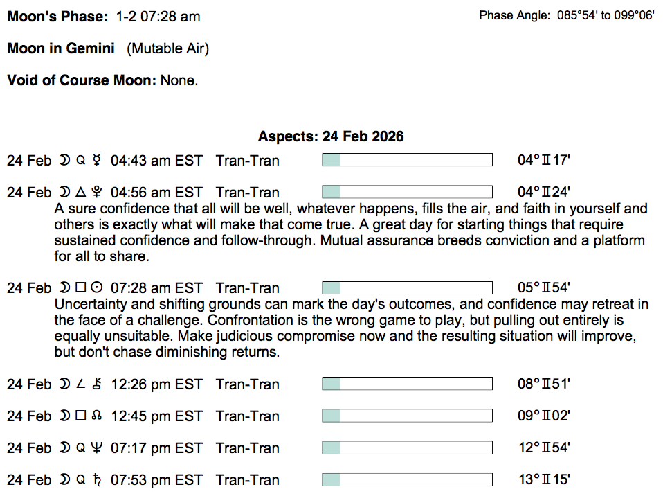 Explore the astrology of the day with zodiac sign horoscopes, daily transits, Moon phases, and planetary signs and aspects.