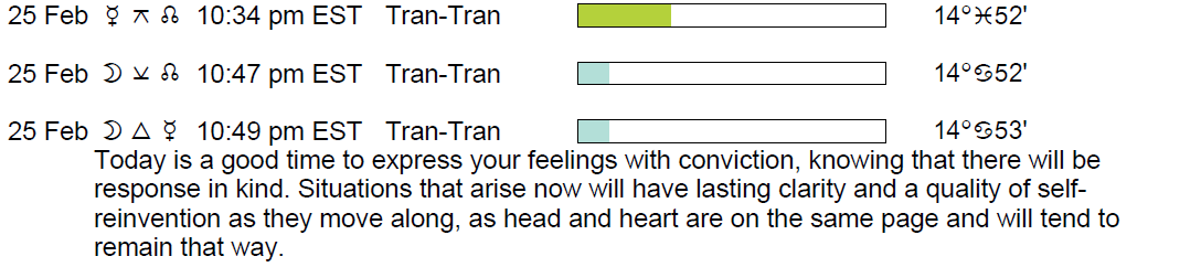 Above are astrological event highlights for the day. Full Horoscopes are on Cafe Astrology. If Your Birthday is February 25th, If Today is Your Birthday full horoscope here.