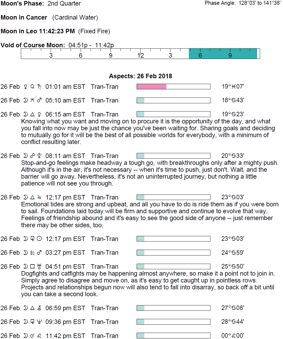 Above are astrological event highlights for the day. Full Horoscopes are on Cafe Astrology. If Your Birthday is February 26th, If Today is Your Birthday full horoscope here.
