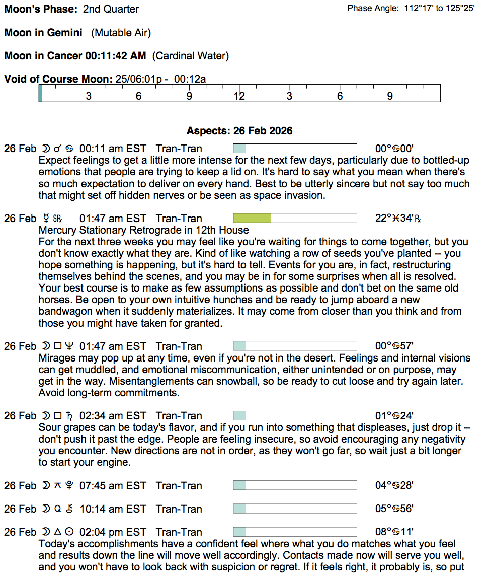 If you’re astrologically inclined and interested in the details of the Astrology of today, here are some of the factors considered in the forecasts: