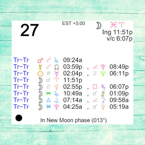 - The New Moon (Solar Eclipse) occurred yesterday in the sign of Pisces.