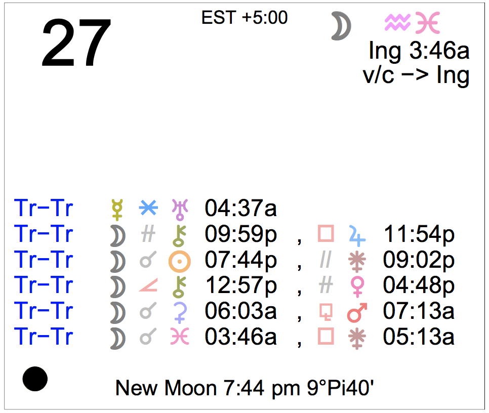- The New Moon occurs today at 7:44 PM in Pisces.