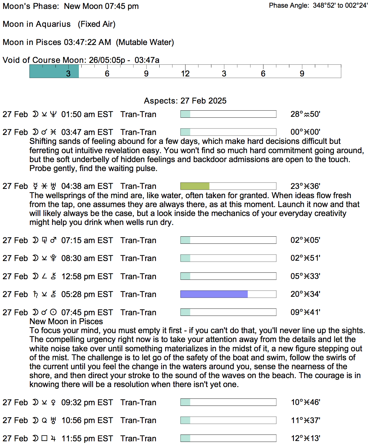 Planet Color Key: The longer the bar, the slower the aspecting planet, and the longer the duration of the planet’s transit.