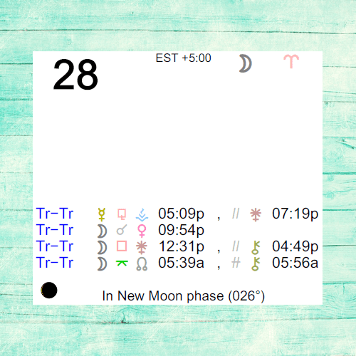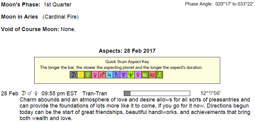 The following aspects (major only) and positions are at noon (EST) on February 28th: