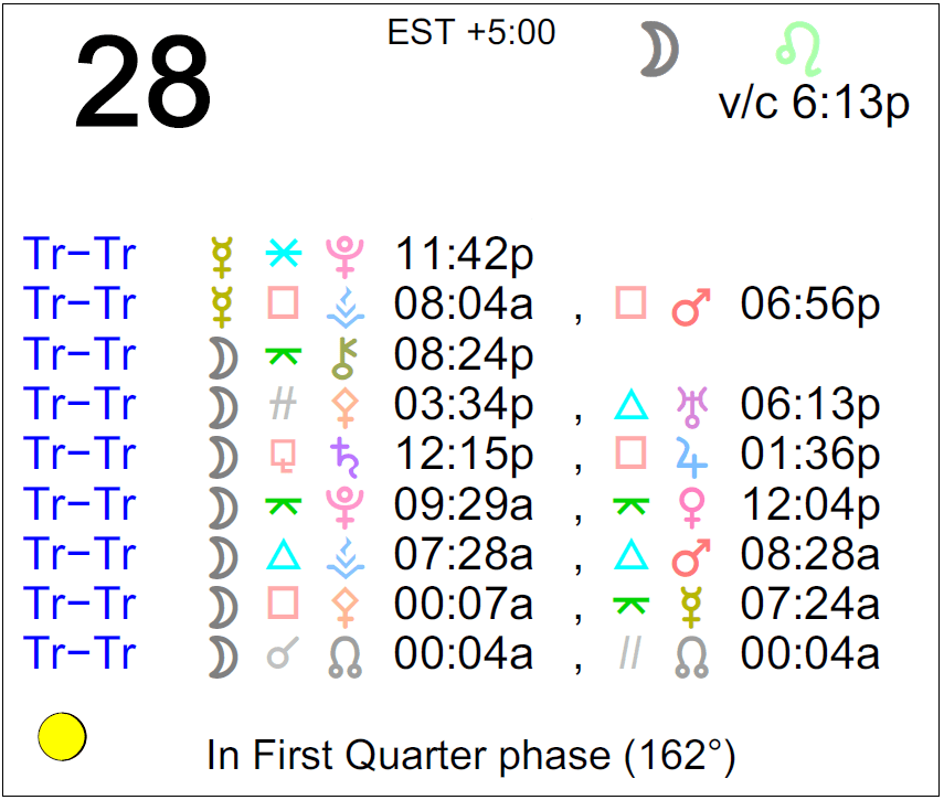 Above are astrological event highlights for the day. Full Horoscopes are on Cafe Astrology. If Your Birthday is February 28th, If Today is Your Birthday full horoscope here.
