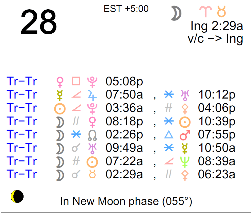 - The void Moon ends at 2:29 AM (since yesterday at 10:24 PM).