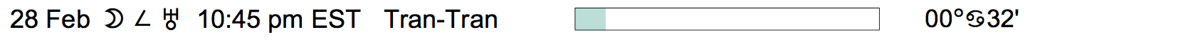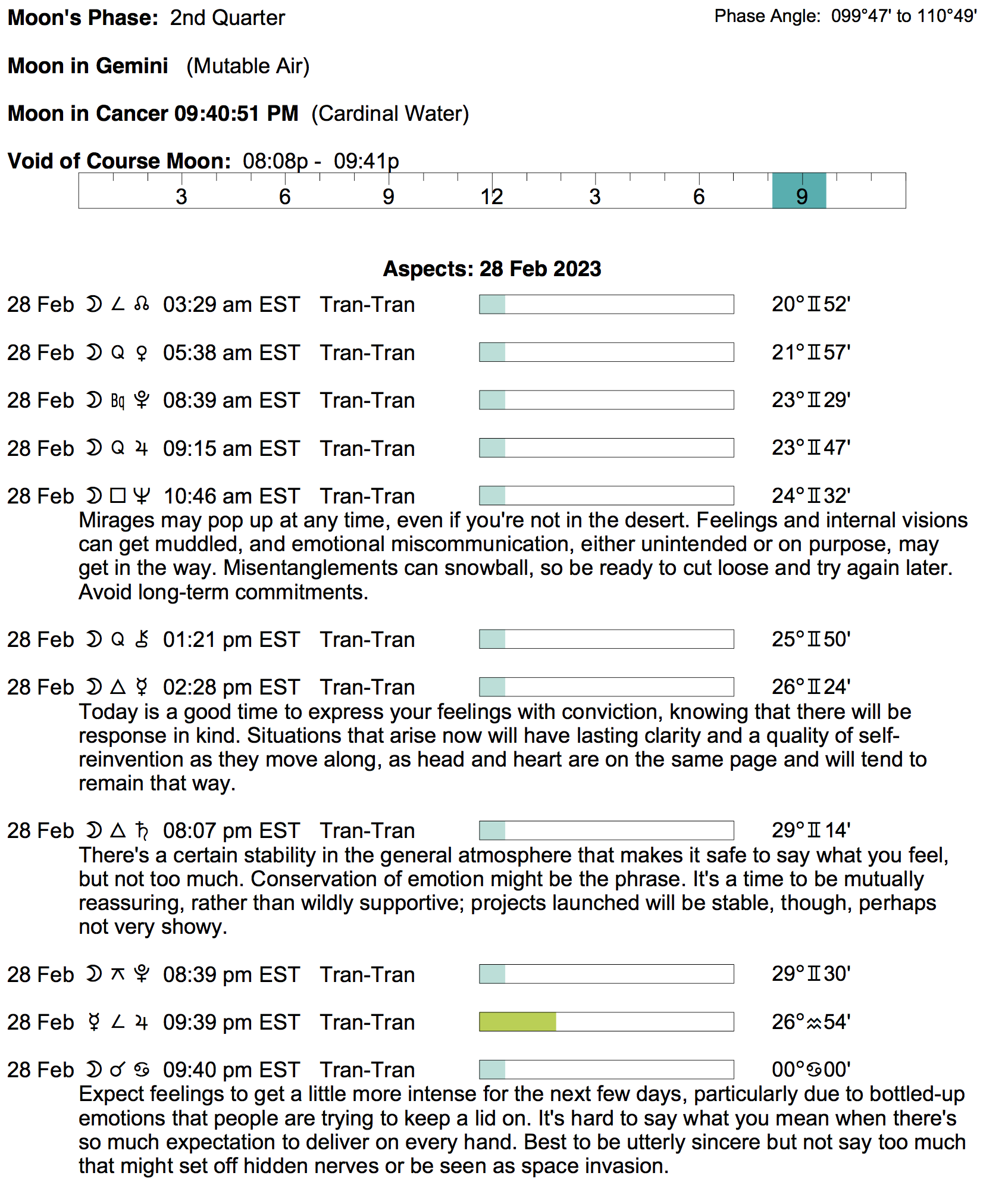 Planet Color Key: The longer the bar, the slower the aspecting planet, and the longer the duration of the planet’s transit.