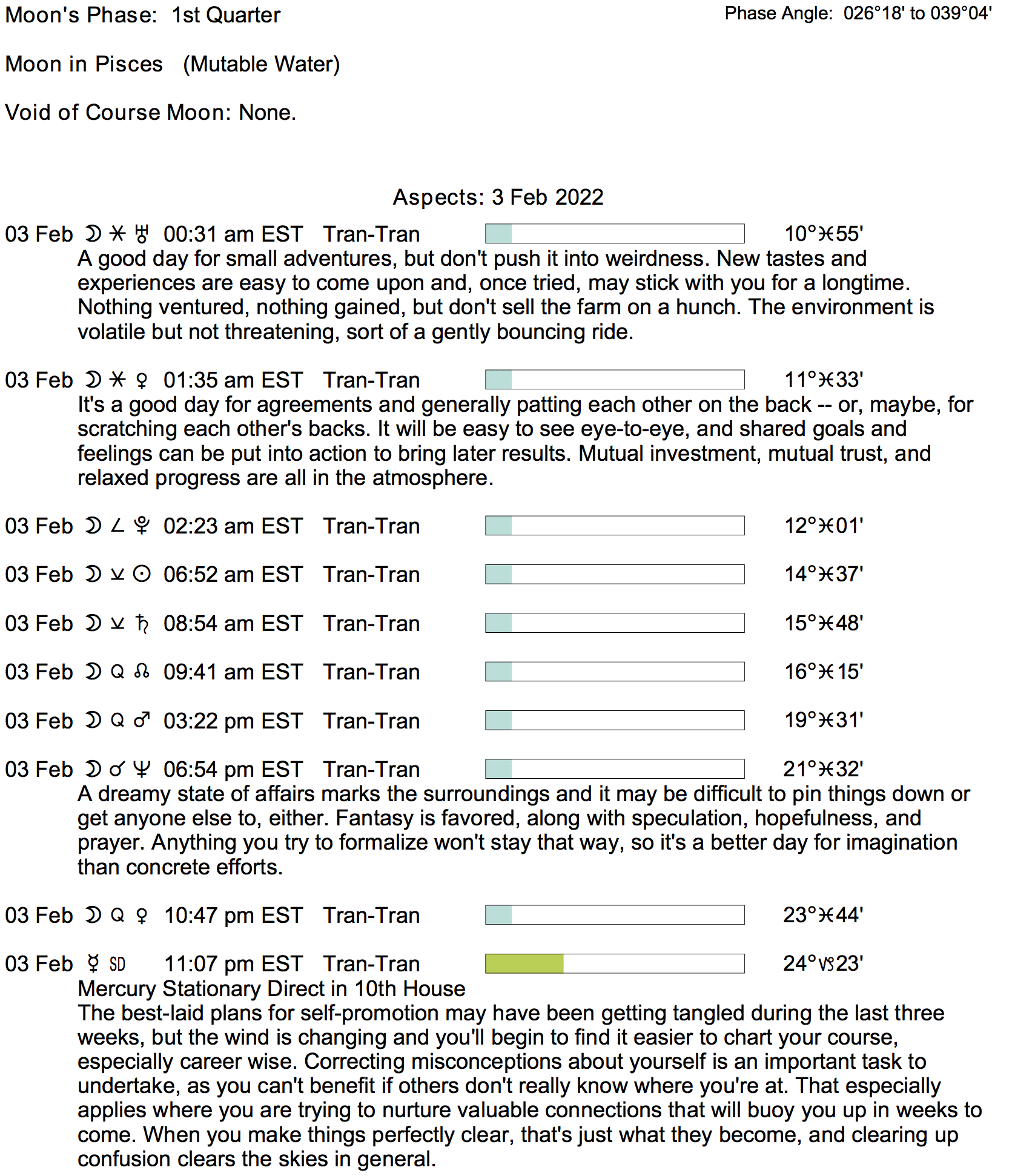- Mercury stations and turns direct tonight (Mercury was retrograde from January 14th to February 3rd).