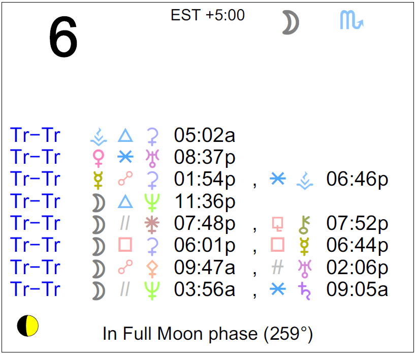Above are astrological event highlights for the day. Full Horoscopes are on Cafe Astrology. If Your Birthday is February 6th, If Today is Your Birthday full horoscope here.