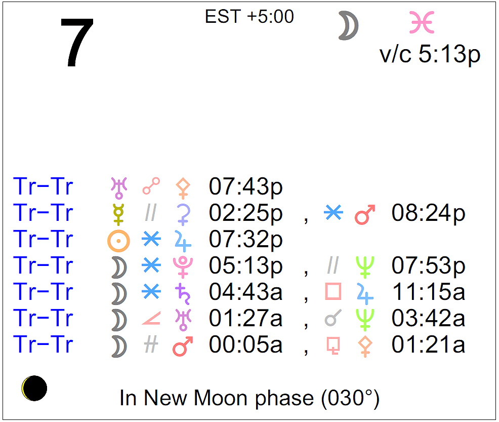- The void Moon occurs from 5:13 PM forward (until the Moon enters Aries tomorrow).