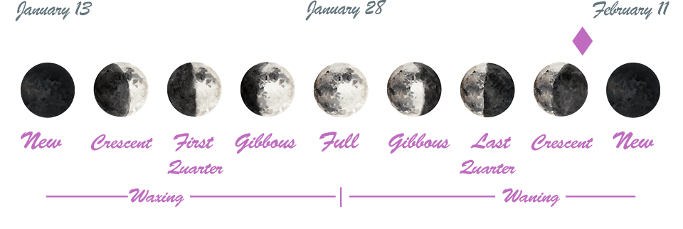 - The Third Quarter Moon occurred on February 4th, and the New Moon will happen on the 11th.