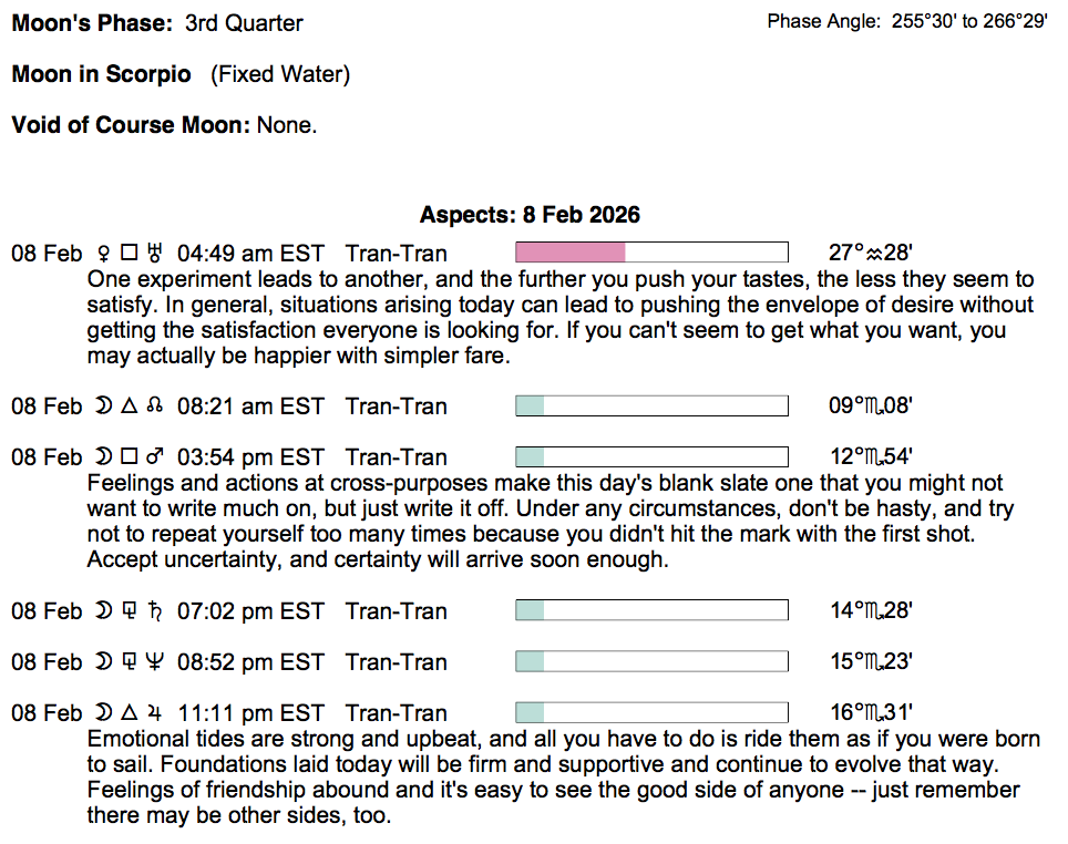 Explore the astrology of the day with zodiac sign horoscopes, daily transits, Moon phases, and planetary signs and aspects.