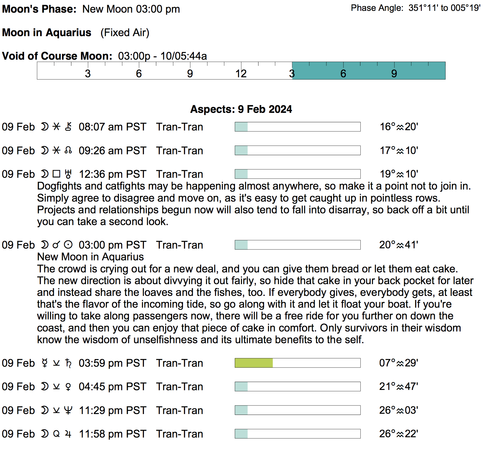 - The New Moon occurs today at 5:58 PM in the sign of Aquarius.
