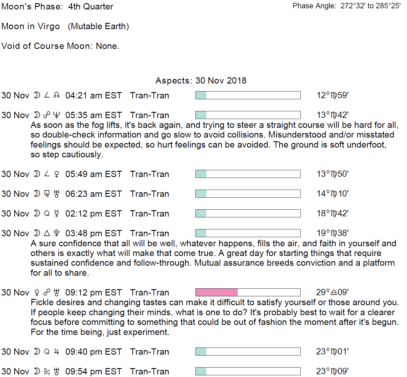 **Conjunctions to Select Fixed Stars on November 30, 2018.**