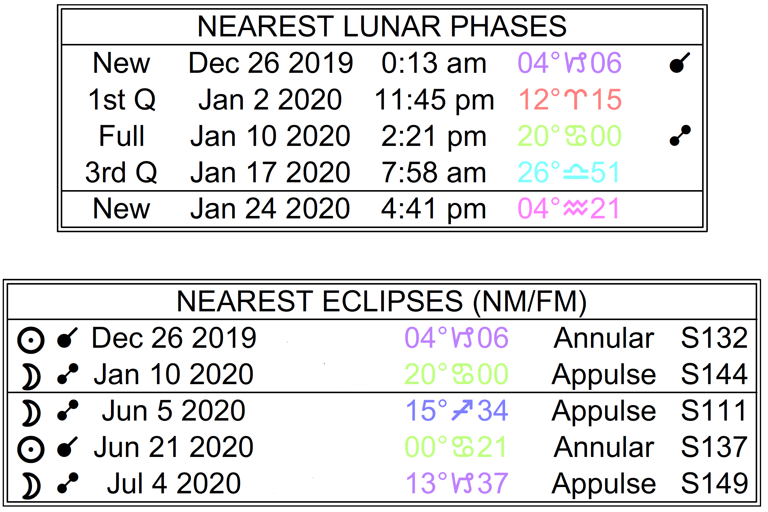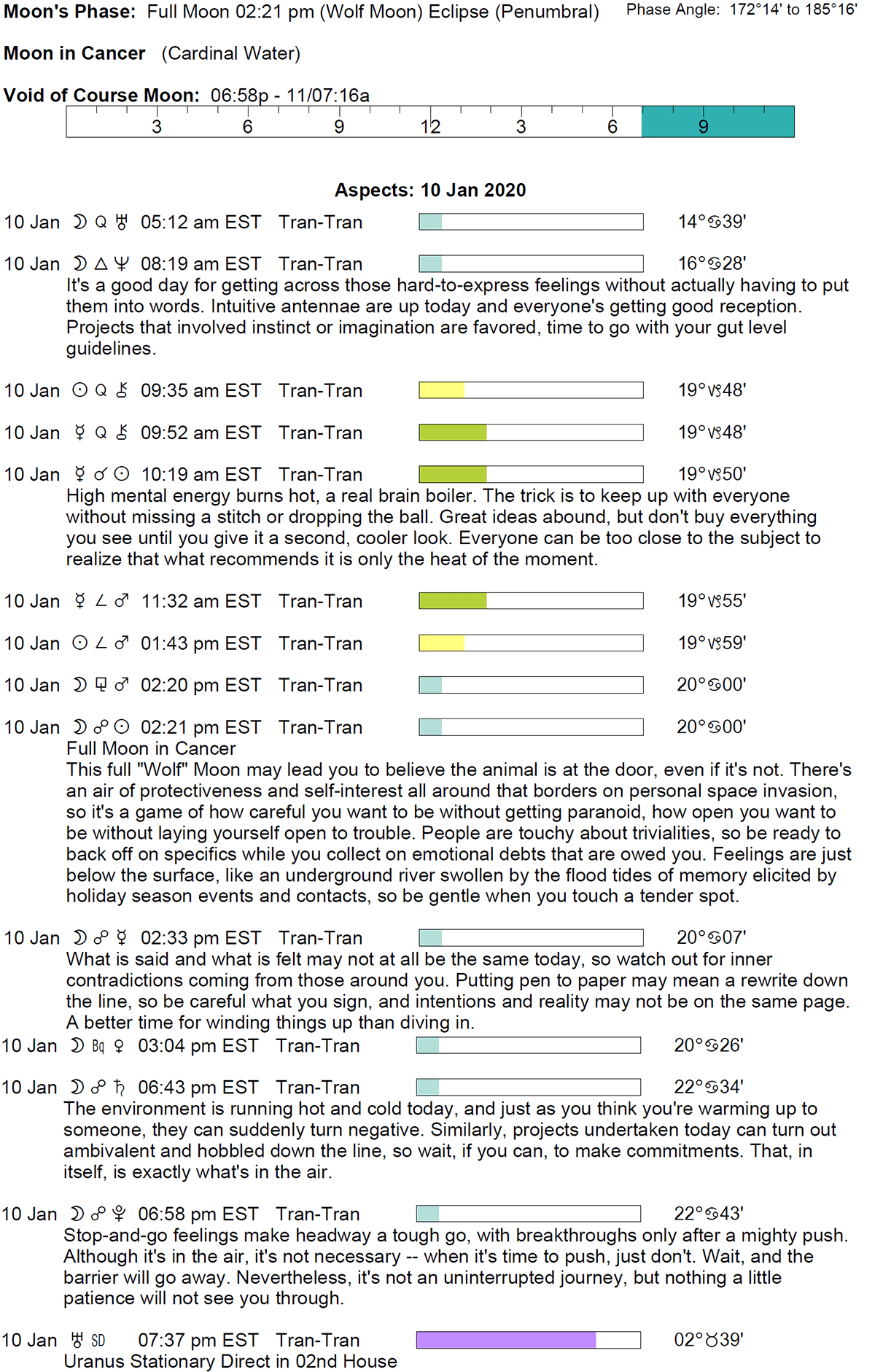 Planet Color Key: The longer the bar, the slower the aspecting planet and the longer the duration of the planet’s transit.
