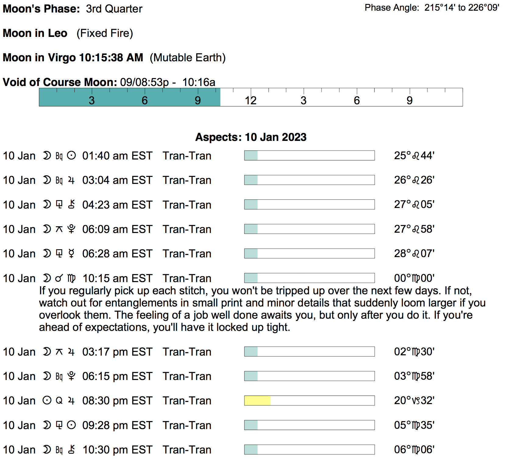 - The void Moon continues until 10:14 AM (since yesterday at 8:52 PM).