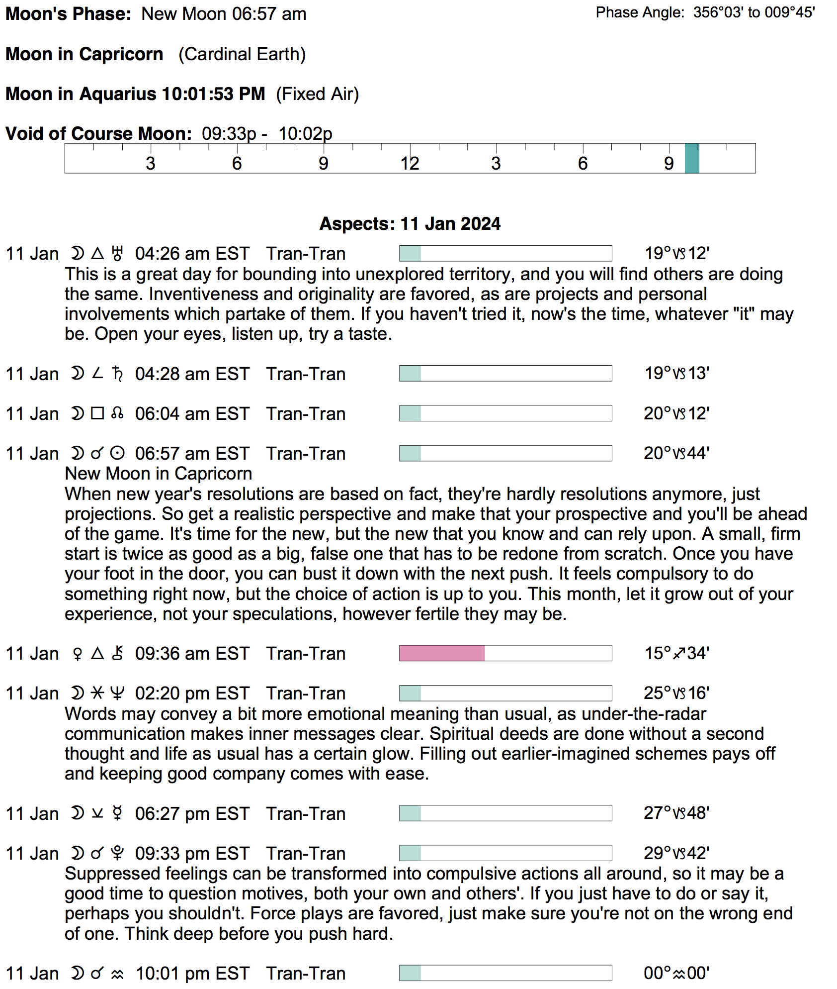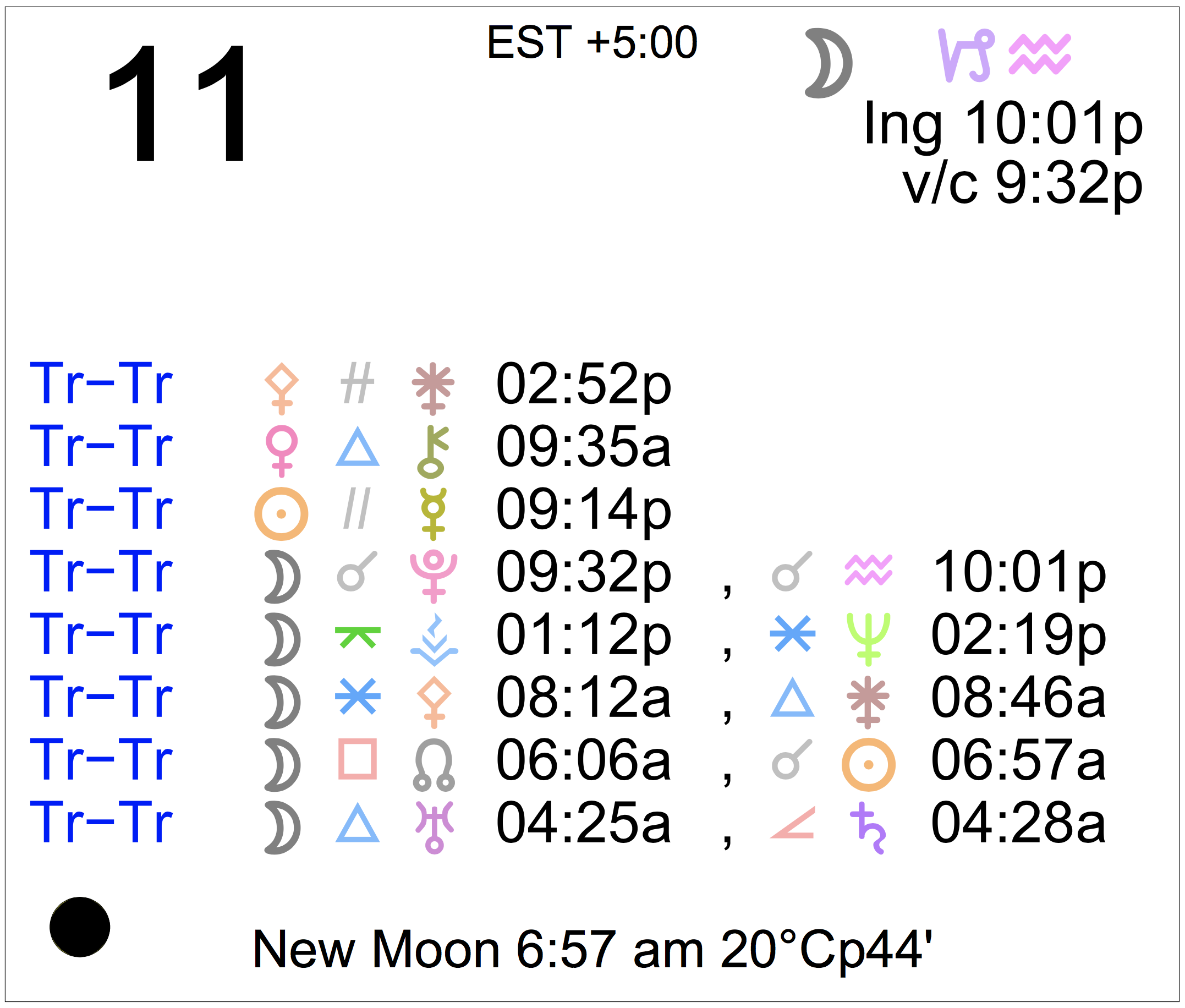 - The New Moon occurs this morning at 6:57 AM in the sign of Capricorn.