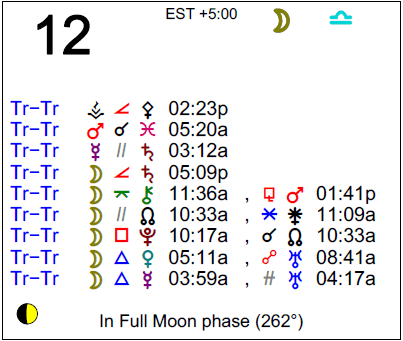 Description: Transiting Moon SesquiSquare Transiting Mars