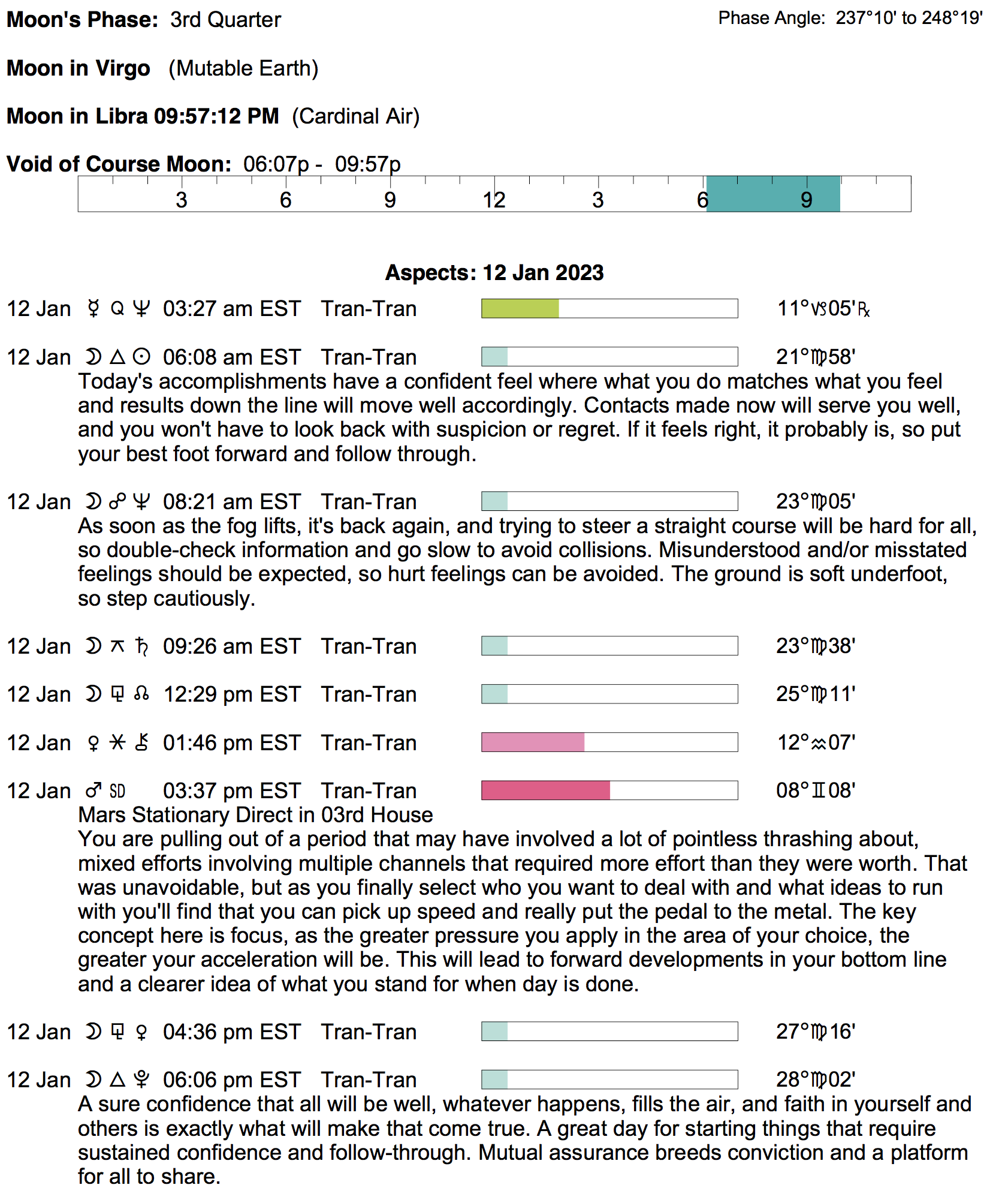 - Mars stations and turns direct today (Mars was retrograde from October 30th, 2022, to January 12th, 2023).