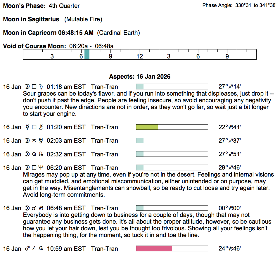 - A void Moon period occurs from 6:18 AM to 6:46 AM today.