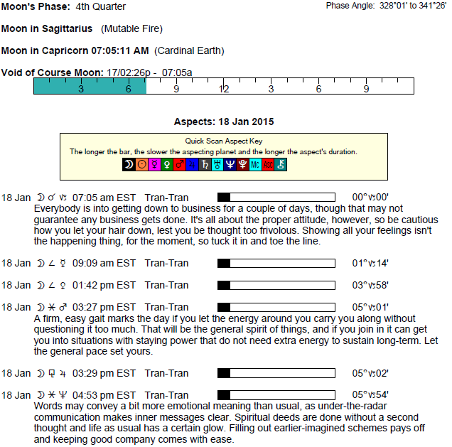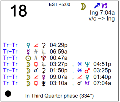 The following aspects (major only) and positions are at noon (EST) on January 18th: