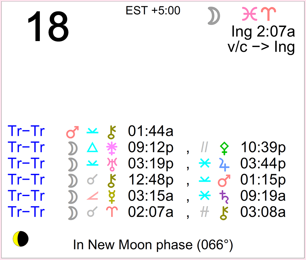 - The Moon is in Pisces until 2:07 AM, after which the Moon is in Aries.