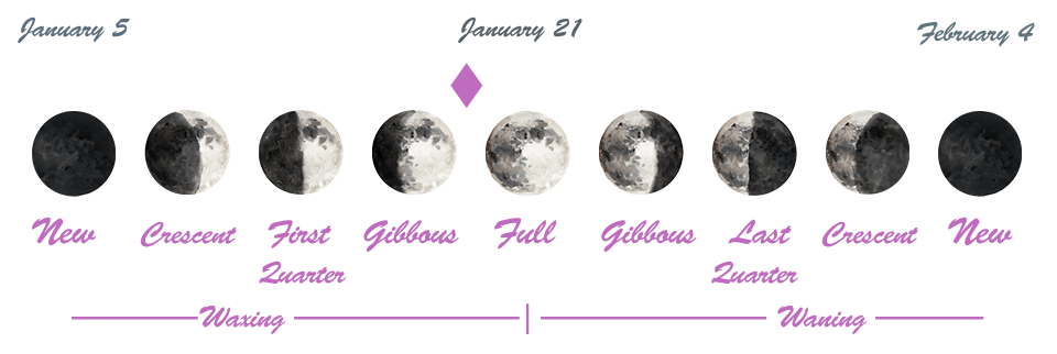 - We are in between the First Quarter Moon which happened on the 14th, and the Full Moon (Lunar Eclipse) that will occur on January 21st.
