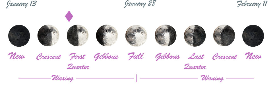- A New Moon occurred on the 13th in the sign of Capricorn, and a First Quarter Moon will occur tomorrow.