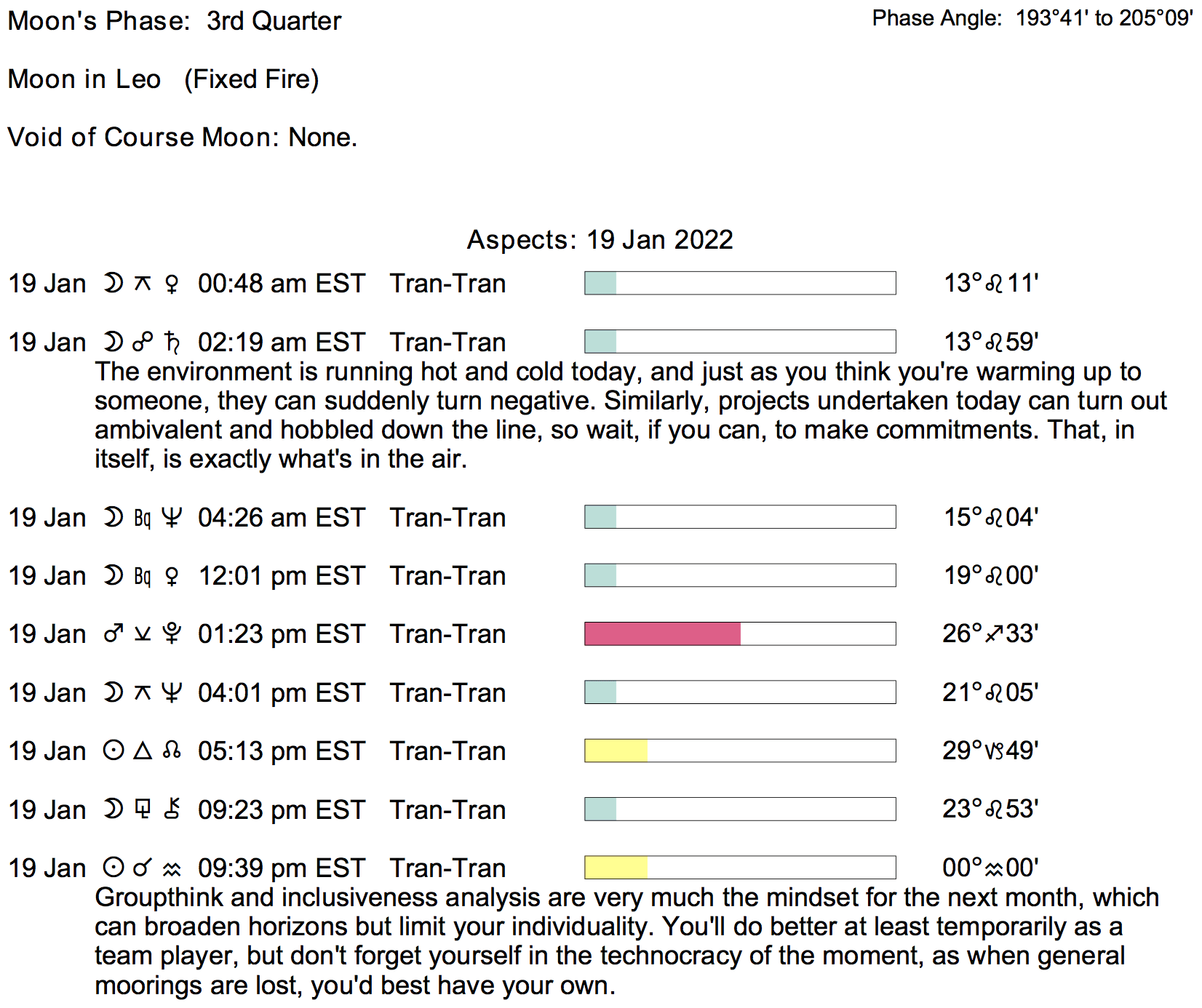 If you’re astrologically inclined and interested in the details of the Astrology of today, here are some of the factors considered in the forecasts: