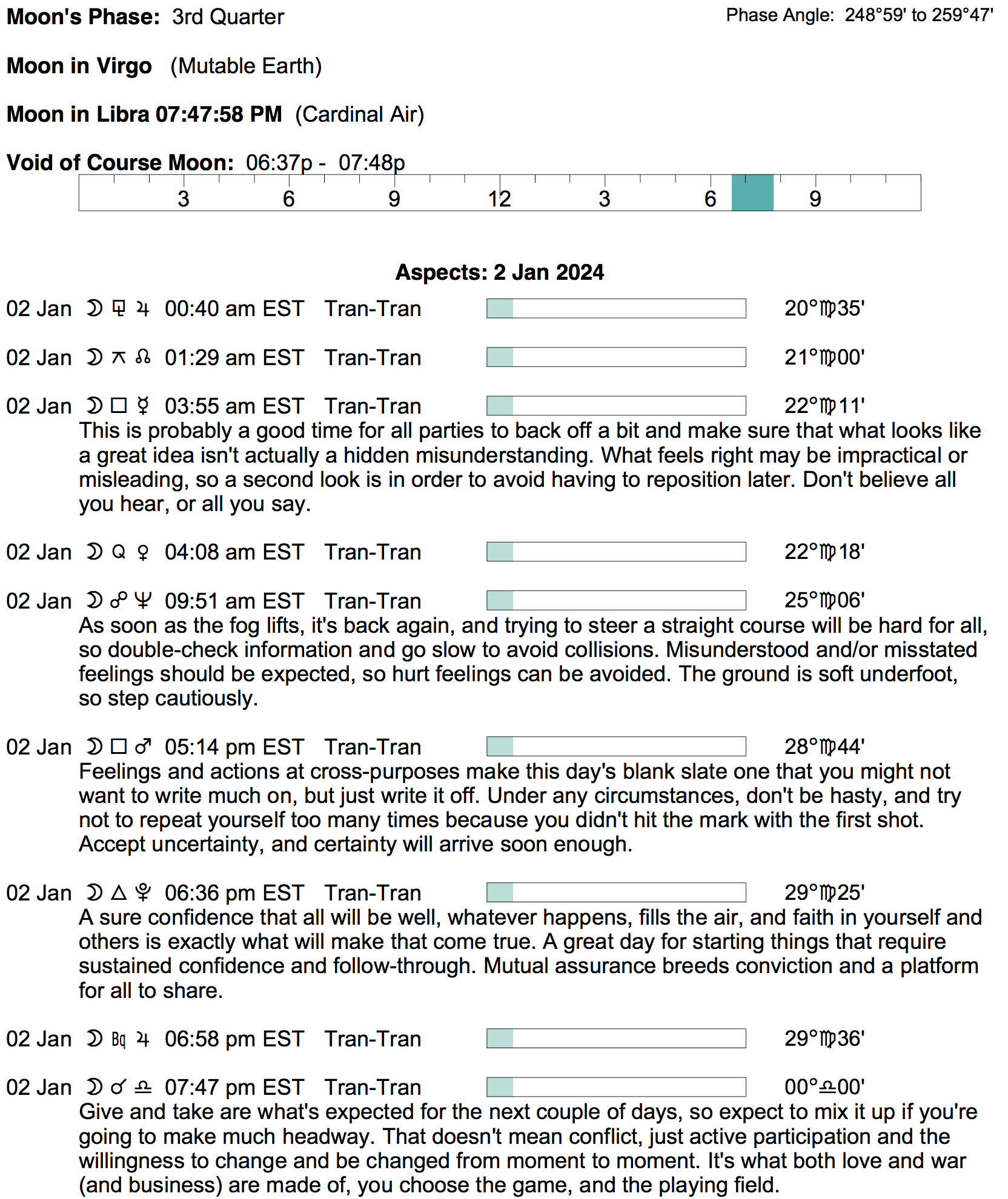 If you’re astrologically inclined and interested in the details of the Astrology of today, here are some of the factors considered in the forecasts: