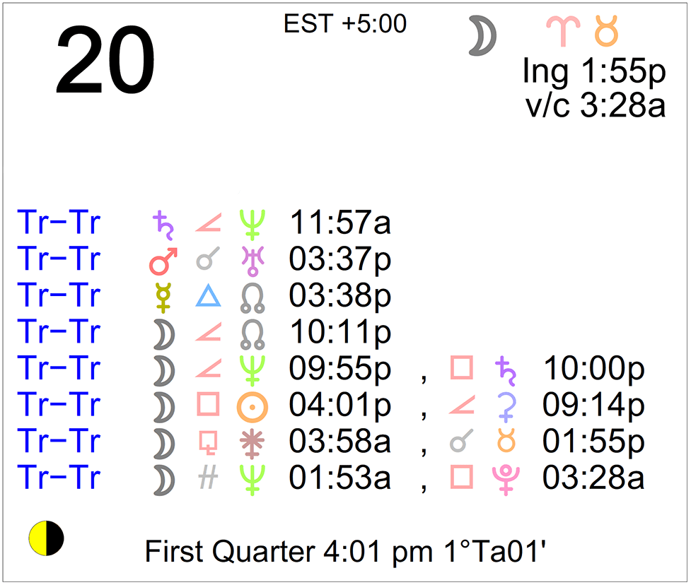 - The Moon is in Aries until 1:55 PM, after which the Moon is in Taurus.
