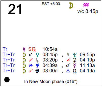 The following aspects (major only) and positions are at noon (EST) on January 21st: