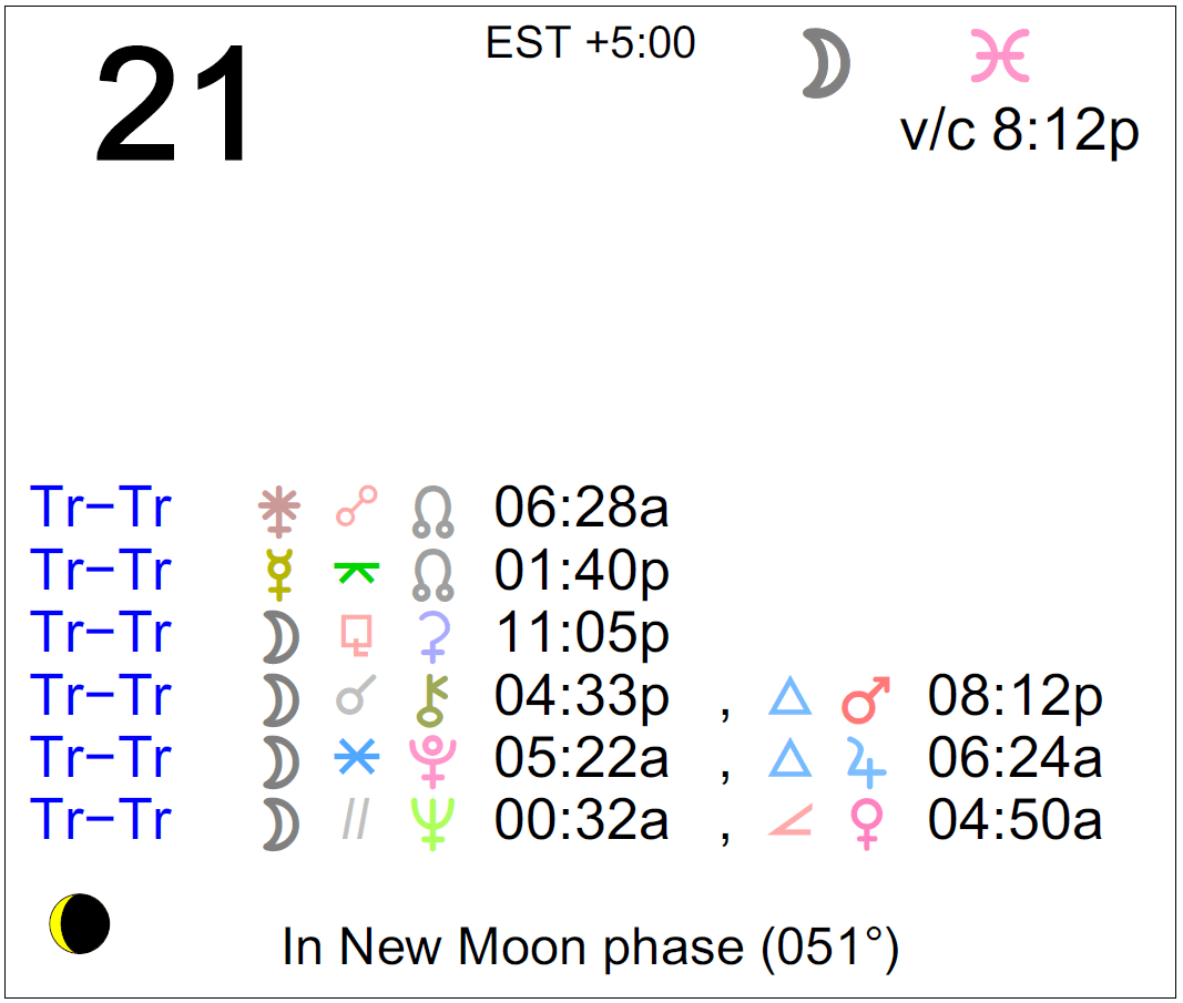 - The Moon is void from 8:12 PM forward (until tomorrow at 1:26 AM).