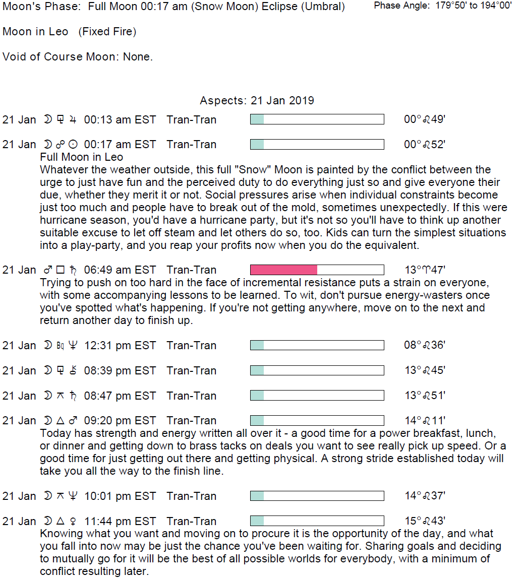 - The Full Moon (Lunar Eclipse) occurs today at 12:15 AM in the sign of Leo.