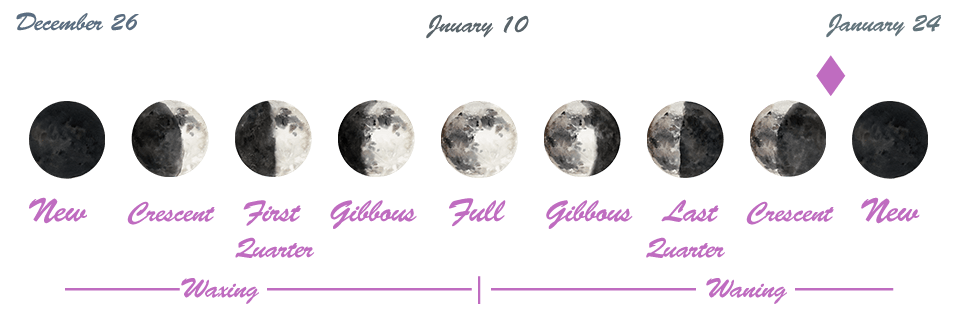 - The Third Quarter/Last Quarter Moon occurred on the 17th, and the New Moon will happen on January 24th.