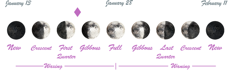 The purple marker above shows where we are in the current moon phase cycle.