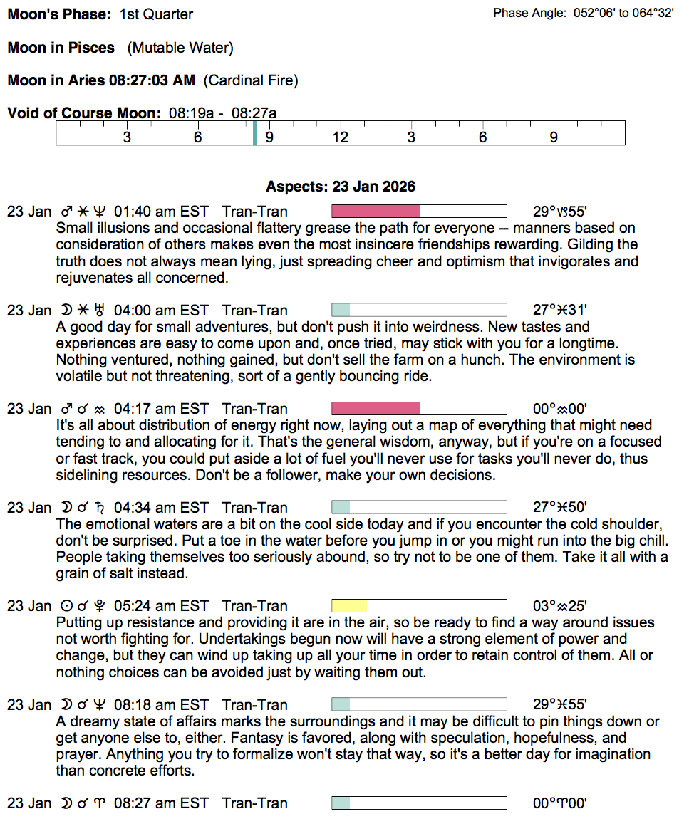 - A void Moon period occurs from 8:16 AM to 8:25 AM today.